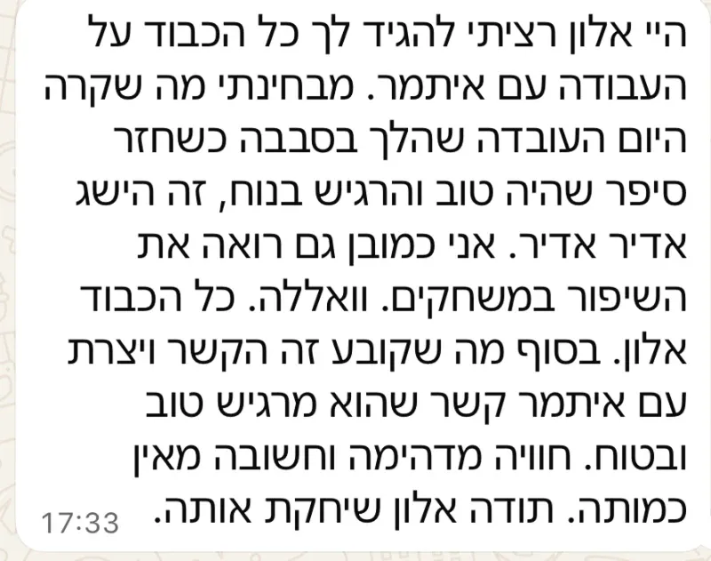 אתה אבא שלו, לא מנטור. הילד צריך אותך כמקום בטוח ותומך ללא תנאי. כשאתה מנתח לו את המשחק הוא שומע, "אני מאוכזב ממך",