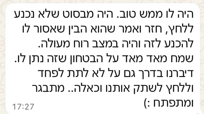 שאין שום התחייבות לתהליך ואתם יכולים לצאת בכל רגע נתון.